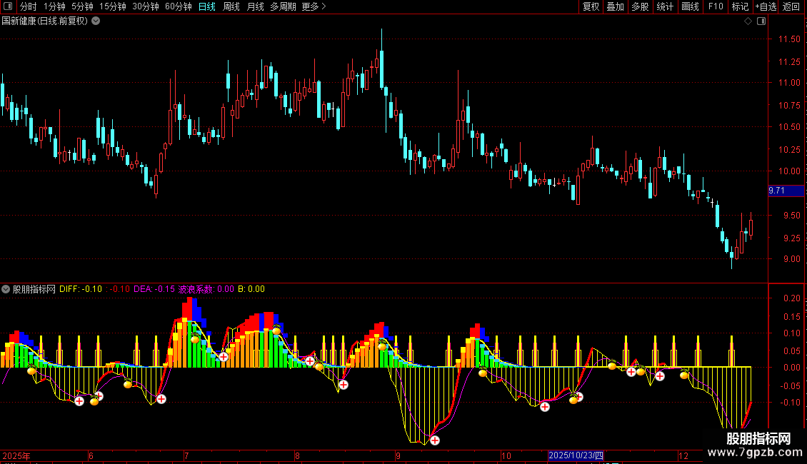STICKLINE(crOSS(MA(A,1),G),0.05,0,4,1),COLORYELLOW,LINETHICK2;{选股信号:结合线下DIFF看}