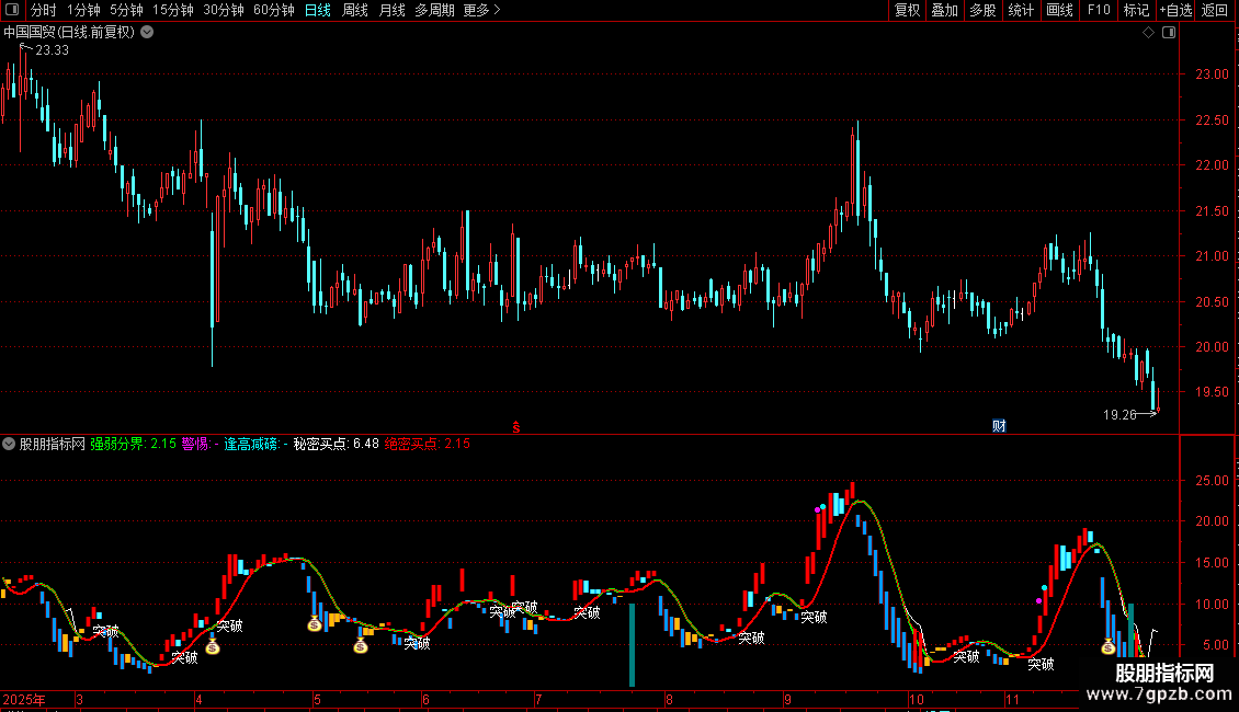 绝密买点:IF((VARG2 <= 0),量2+4,强弱分界),COLORRED;