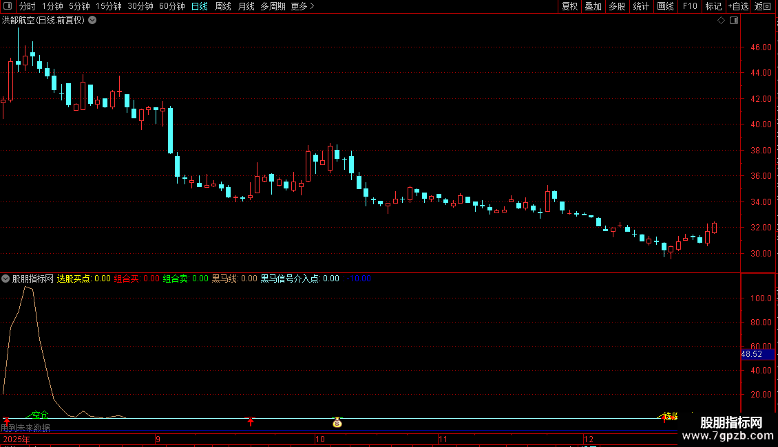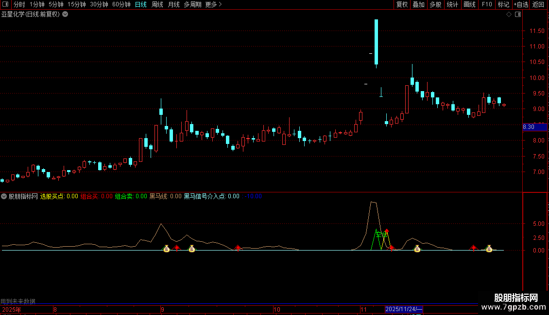 DRAWTEXT(黑马信号介入点>0,4.5,'●我的黑马介入点'), , COLORRED;