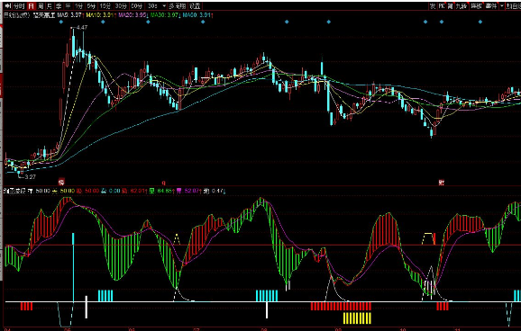 注:=MA((LLV(LOW,36)-CLOSE)/(HHV(HIGH,36)-LLV(LOW,36))*100,5),coloryellow;