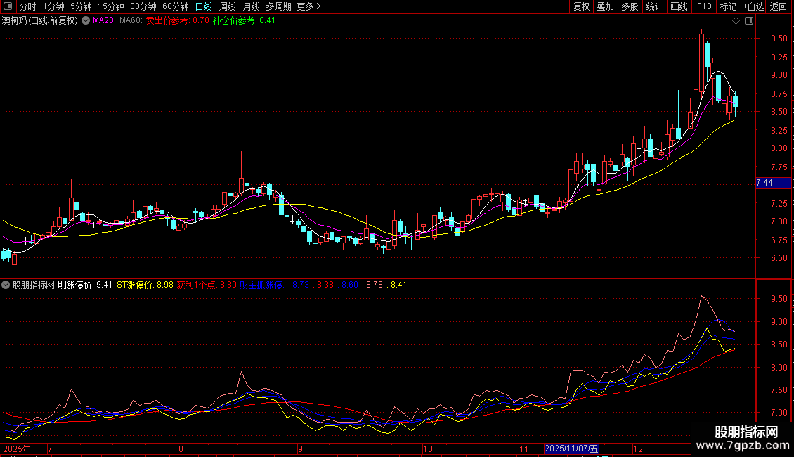 STICKLINE(财主抓涨停,0.6,1,2,0),COLORMAGENTA;