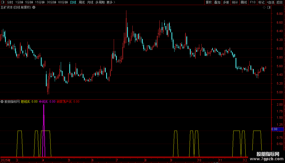 中线买:IF(绝佳买点>10000 AND 绝佳买点>20000,2,0),COLORFF00FF,LINETHICK2;