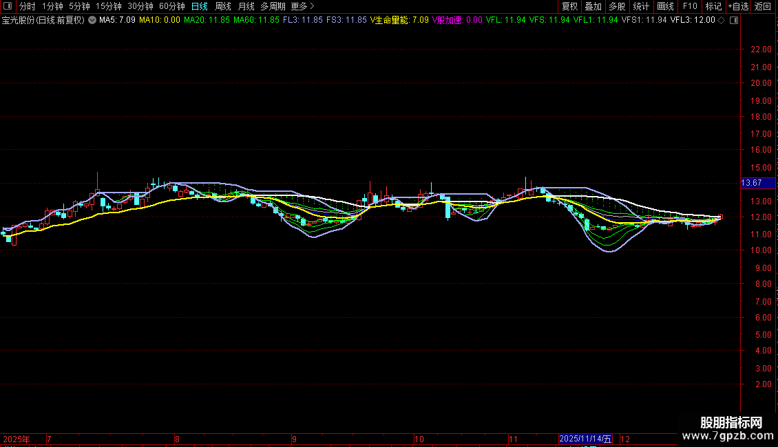V股加速:IF( V生命量能>23, V散户,0 ),LINETHICK0,COLORYELLOW;