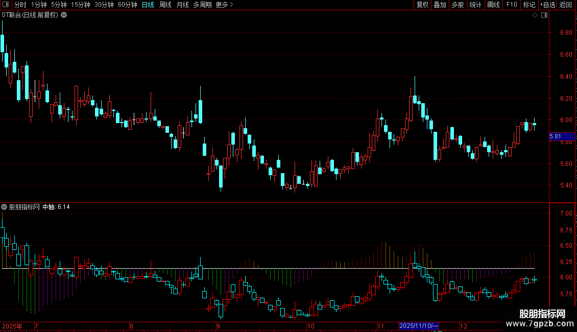 STICKLINE(MACD>0,中轴,中轴+MACD,0,-1),COLORRED;