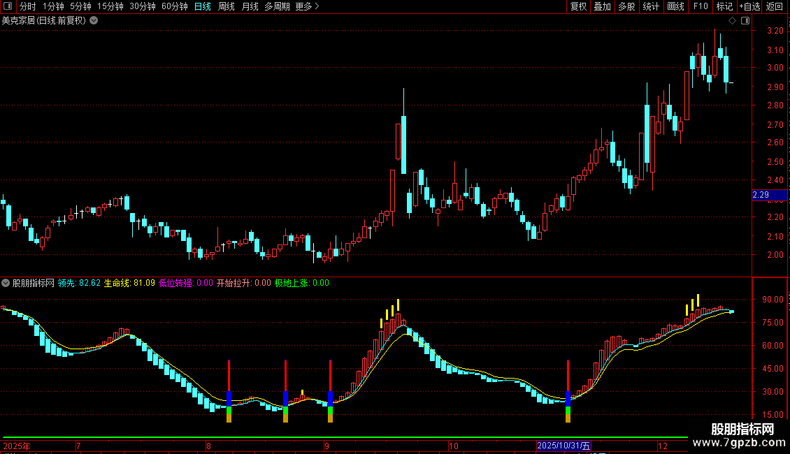 极地上涨:IF(A6,领先,0),COLORGREEN,LINETHICK2;