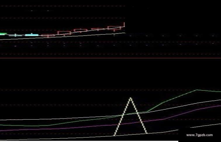 { 绿线上穿紫线时,可作波段买入,绿线上穿白线时很可能是大牛股。}