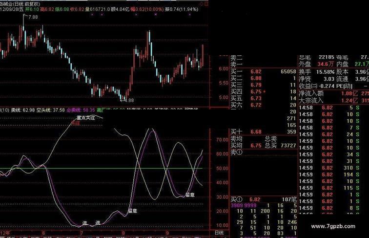 DRAWTEXT(空头线>85 AND CROSS(卖线,必卖线),必卖线*1.15,'进');