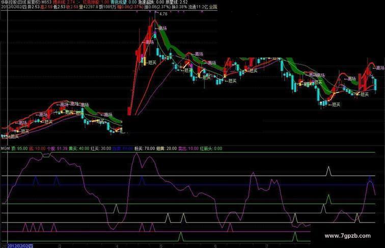 卖出:IF(A1>=70 AND A1>A2 AND V<REF(V,2) AND C<REF(C,1)*1.03,20,10);