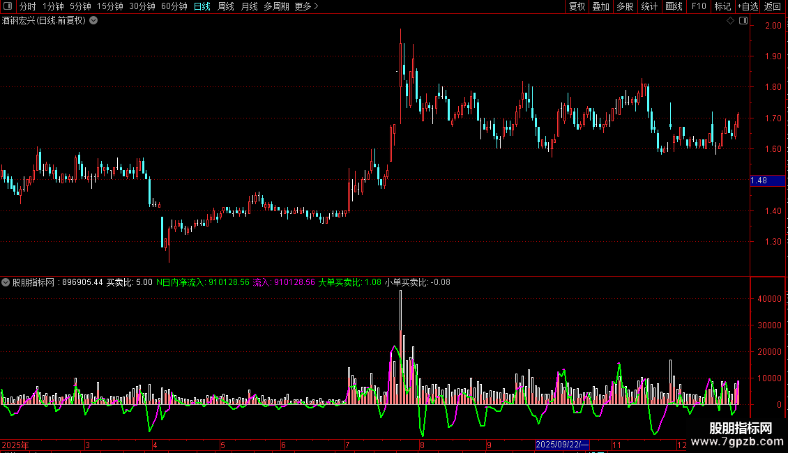 流入:IF (N日内净流入>REF(N日内净流入,1),N日内净流入,DRAWNULL),COLORMAGENTA,LINETHICK2;