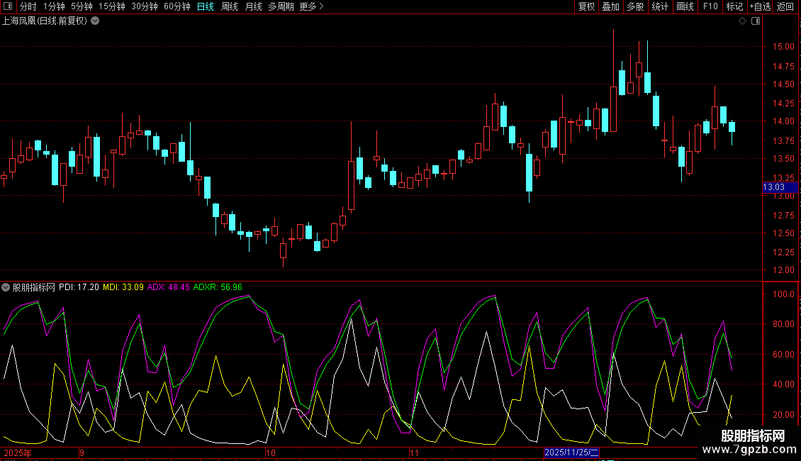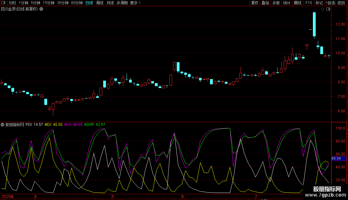 ADX: EXPMEMA(ABS(MDI-PDI)/(MDI+PDI)*100,M);