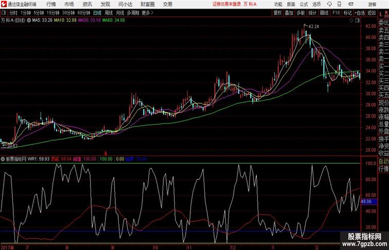 公式用法:1.低于20,超买见顶,可考虑卖出;2.高于80,超卖见底,可考虑买进;3.与RSI、MTM指标配合使用,效果更好。