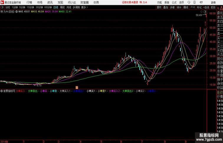 STICKLINE(CURRBARSCOUNT=3,小单买2,大单买入2,3,1),COLORMAGENTA;