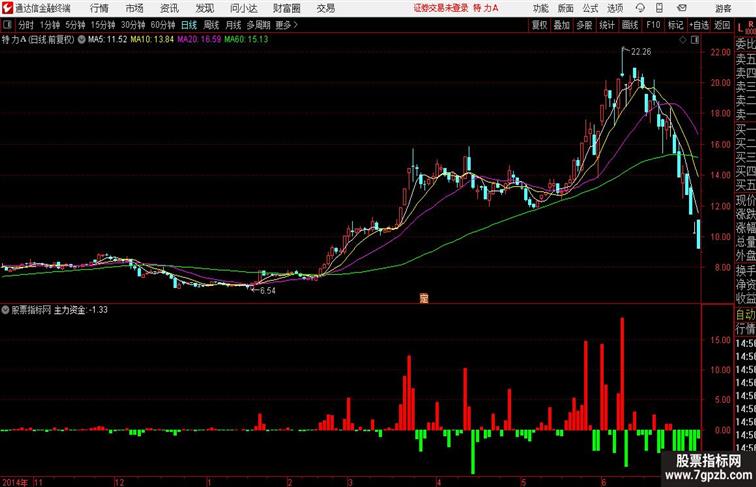 STICKLINE(主力资金<0,主力资金,0,2.3,0),COLORGREEN;