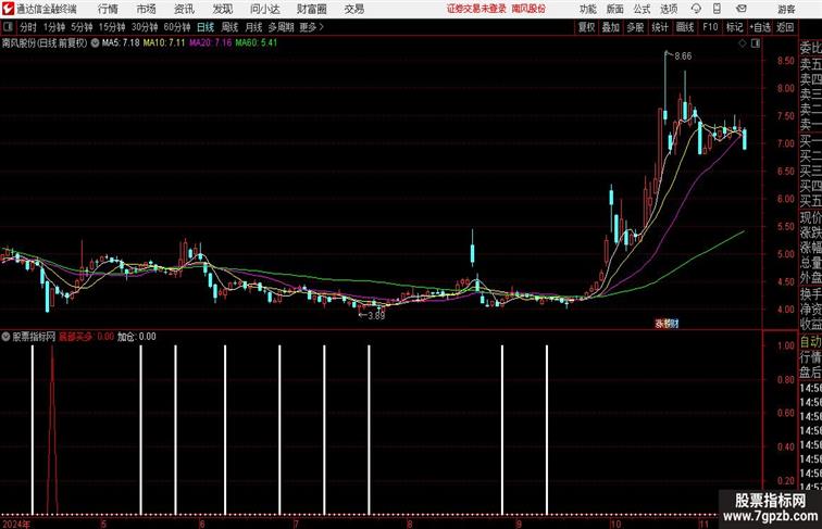 V1赋值:收盘价的3日简单移动平均=7日内收盘价的3日简单移动平均的最高值