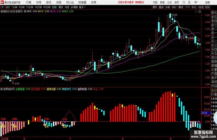 DRAWTEXT(CROSS(关注,1.2),关注*0.5-6,'↑▲'),COLORFF00FF;
