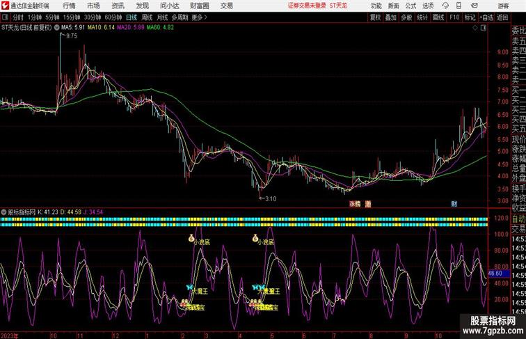 上面双排黄块块是短线的操盘指导,并且整合了五种抄底指标,感谢大魔王的创作者,实测五种抄底指标的成功率都在75%以上,规则是5%止损,5-10日持股,收盘价开仓,收盘价平仓,全图无未来,大家可以自己去测试.测试周期是2021.11.20-2020.11.20