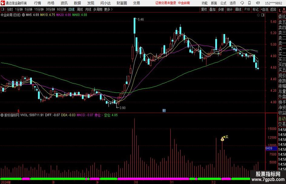 5、在买入信号位置出现"钱袋子"“买”表示买入信号,进一步增强视觉感知和决策效率。