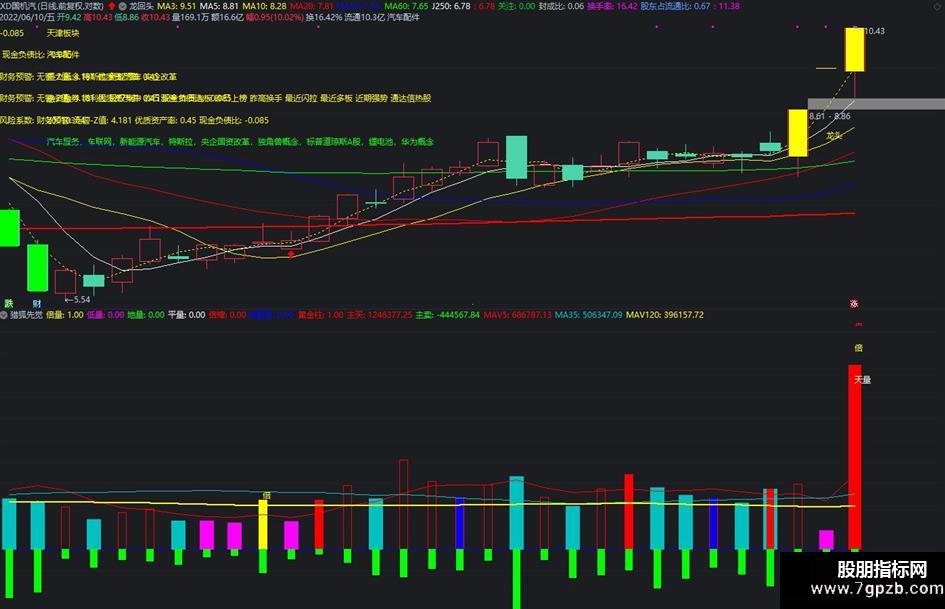 这是他9号进去的国机汽车的 看来得跟上大佬的操作还得要有跟他一样的悟道之外还要有好的指标工具!