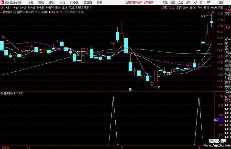 VAR10:=C/REF(C,1)>1.048 AND C=H AND BETWEEN(FORCAST(V,4),0.2*FORCAST(V,6),2.1*FORCAST(V,6));