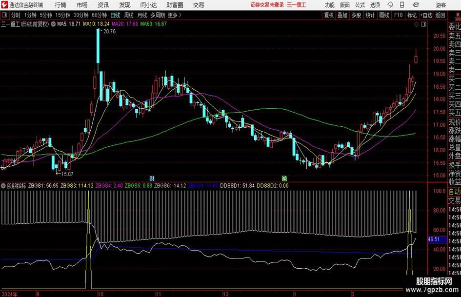 成功率99:=COST(5);短线指标公式:=COST(95);无未来:=COST(50);ZBGS1:(无未来-成功率99)/(短线指标公式-成功率99) *100;ZBGS2:STICKLINE(C>0,100,ZBGS1,1,0),COLOR555555;ZBGS3:(C-成功率99)/(短线指标公式-成功率99) *100 ,NODRAW;ZBGS4:(1-WINNER(C ))*100 ,NODRAW;ZBGS5:WINNER(成功率99*1.35),NODRAW;ZBGS6:100-ZBGS3,NODRAW;ZBGS7:=STICKLINE(ZBGS3>50,50,ZBGS3,1,0),COLORWHITE;ZBGS8:=STICKLINE(ZBGS4< 50,0,ZBGS4,1,0),COLORYELLOW;ZBGS9:(短线指标公式-成功率99)/成功率99*100;DDSSD1:(C-LLV(成功率99,120))/LLV(成功率99,120)*100;DDSSD2:(CROSS(C,短线指标公式) AND DDSSD1< 50 AND ZBGS9< 40)*100;