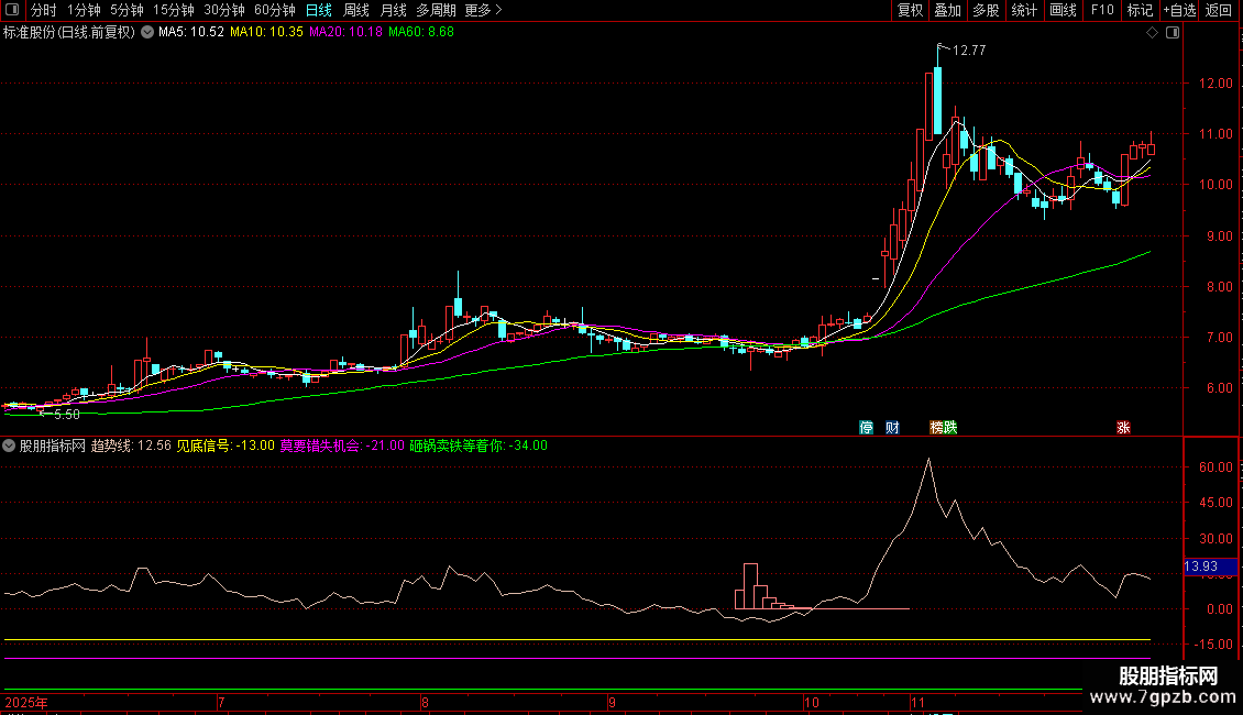 1. 底部线突破:配合庄家资金活跃(影子频现),震荡市中更可靠。