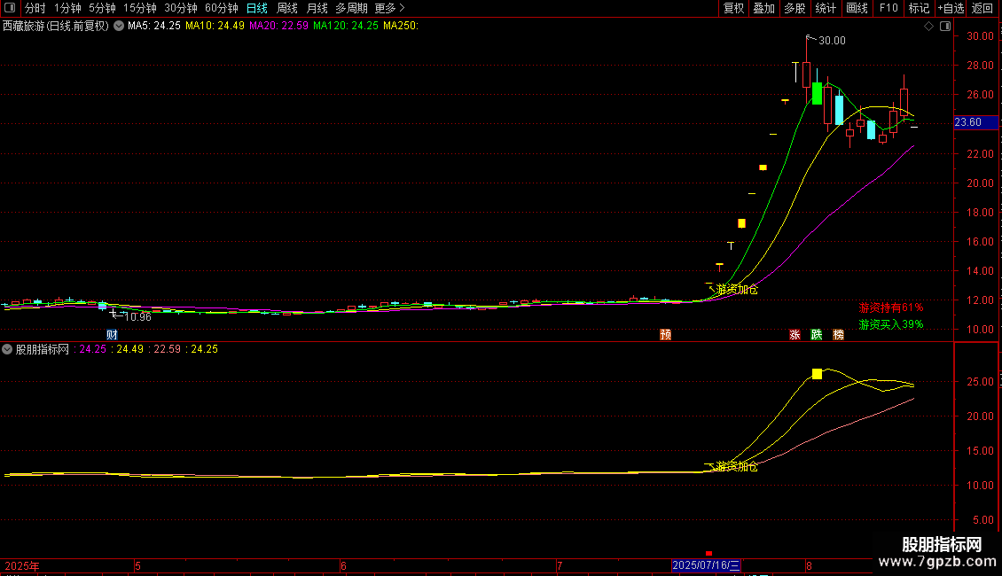 DRAWTEXT(游资 AND VARR6 AND VASS3,L*0.97,'↖游资加仓'),COLORYELLOW;