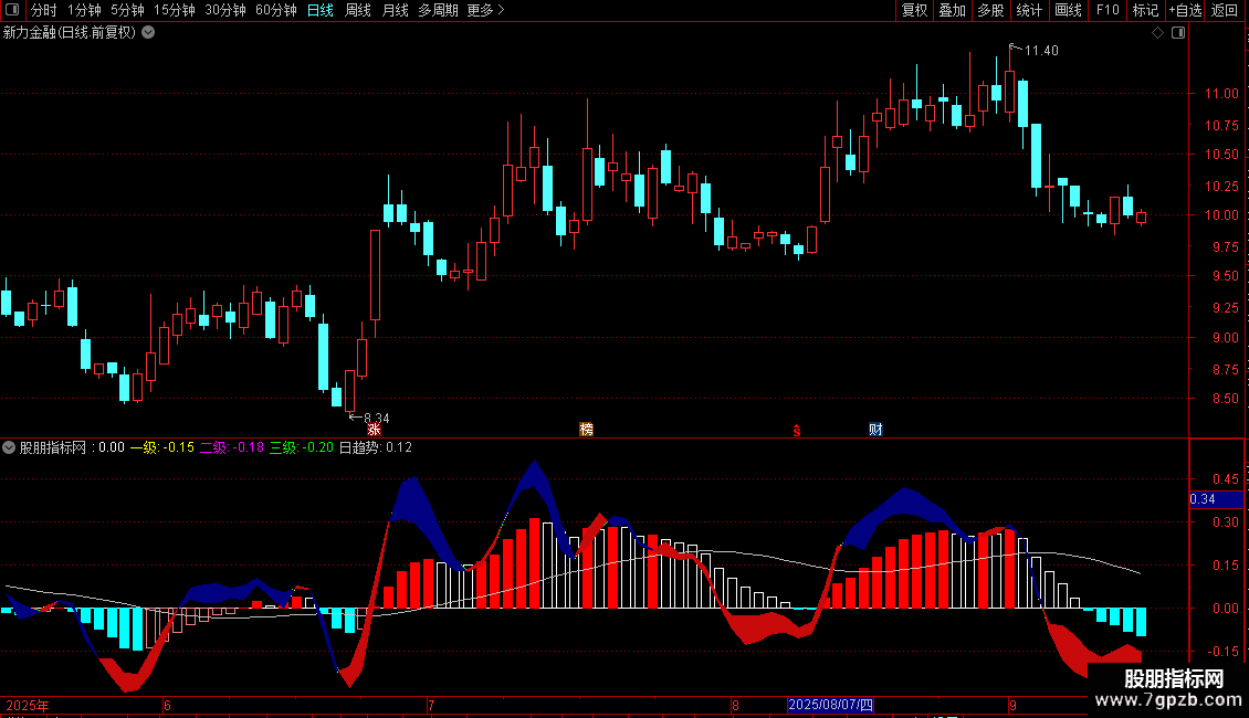 {以下显示“j_df前差值柱”,柱子太薄时显示“十”字星}