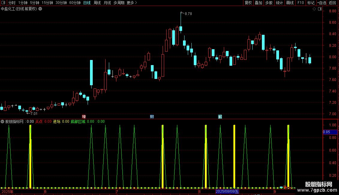 入货点:=IF(REF(底部区域,1)>0 AND REF(C,1)<=REF(O,1) AND 底部区域>0 AND C>O,1,0);
