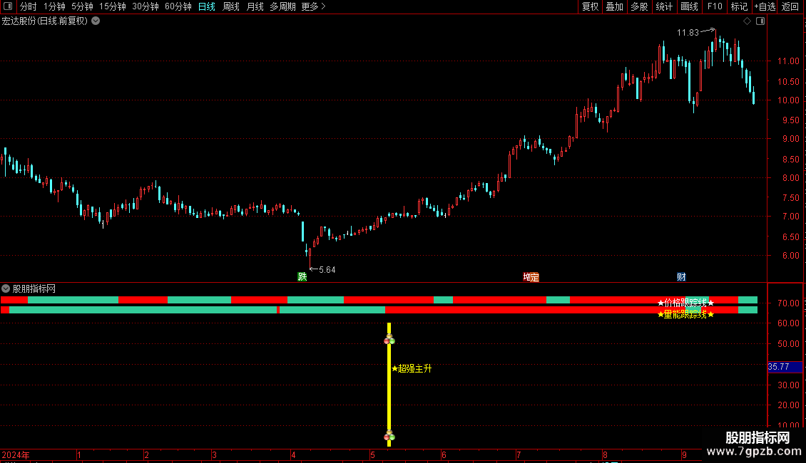 ZB:=C<H AND H>=ZTPRICE(REF(C,1),X1);