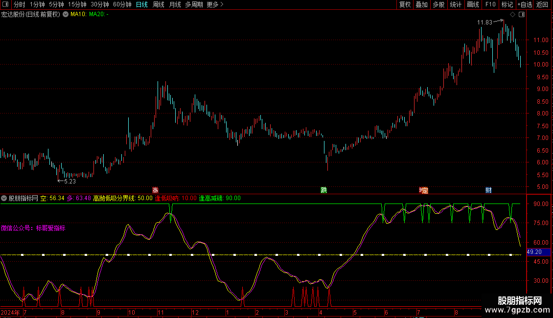 标哥爱指标:=IF(CROSS(BGE4,微信公众号) AND BGE4<40,25,10);