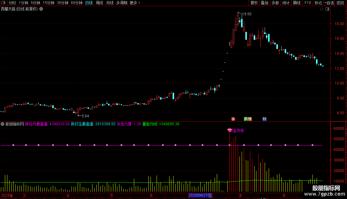 今打压最高值:=CONST(REF(HHV(打压量,FROMOPEN),0)),COLORCYAN;