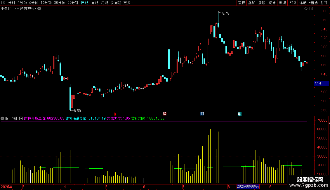 昨打压最高值:CONST(FINDHIGH(打压量,FROMOPEN,240,1)),LINETHICK1,COLORCYAN,NODRAW;
