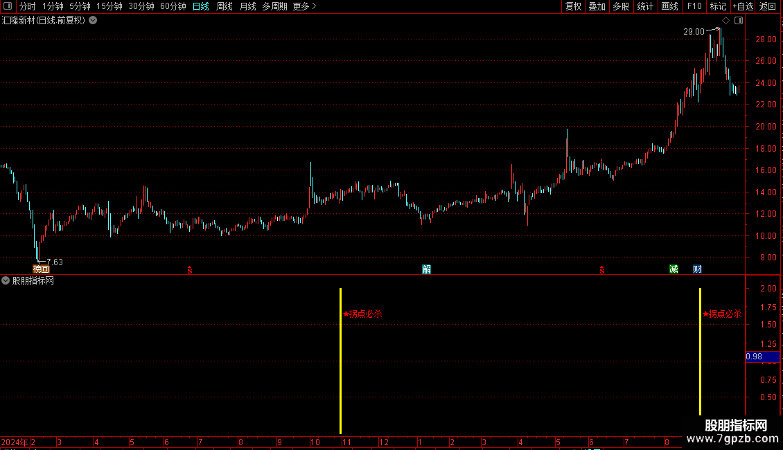 DRAWTEXT(必杀,1.65,' ★拐点必杀'),COLOR0000FF;
