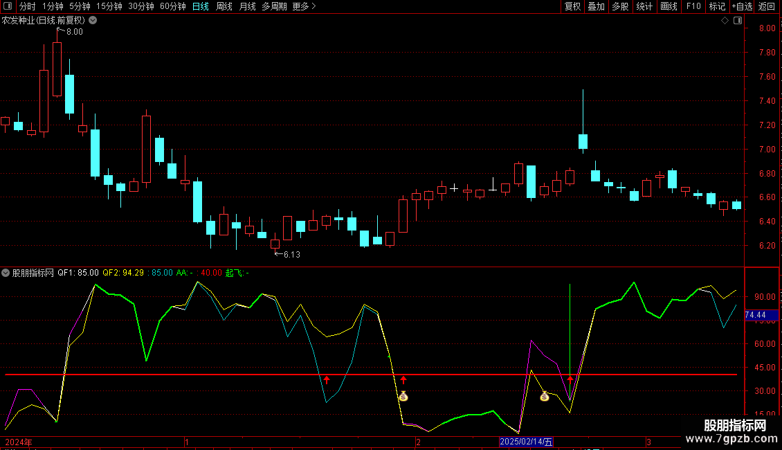 起飞:IF(QF2=QF1,QF2,DRAWNULL)COLORGREEN,LINETHICK2;