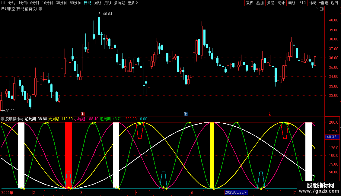STICKLINE(短周期<5 AND 小周期>195,小周期,短周期,5,0),COLORWHITE;