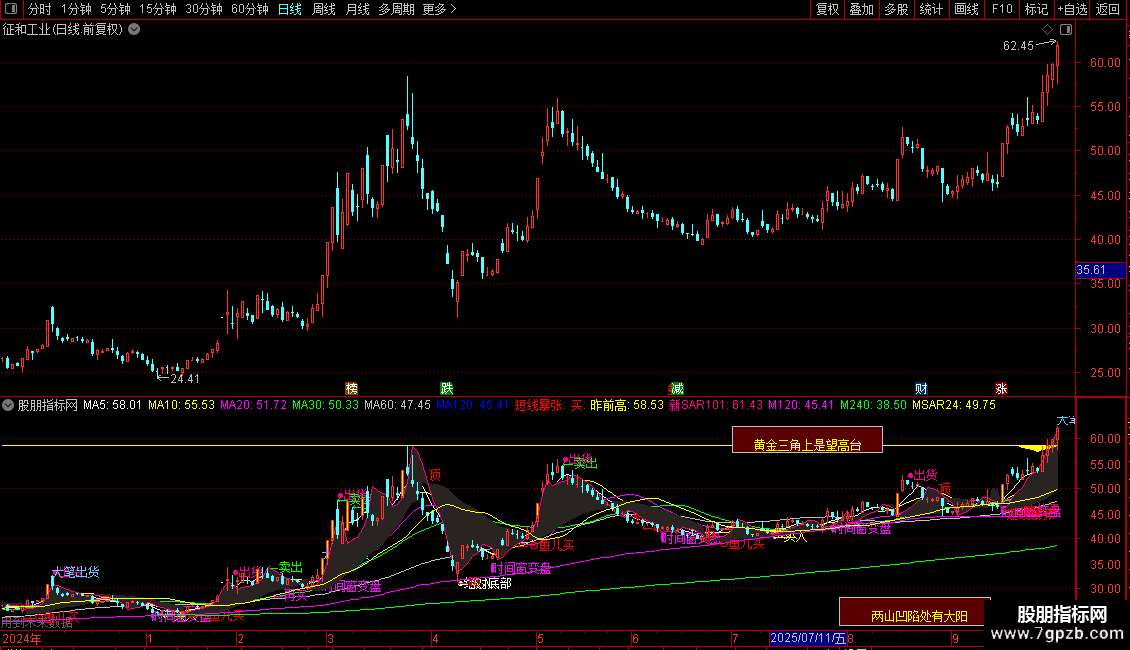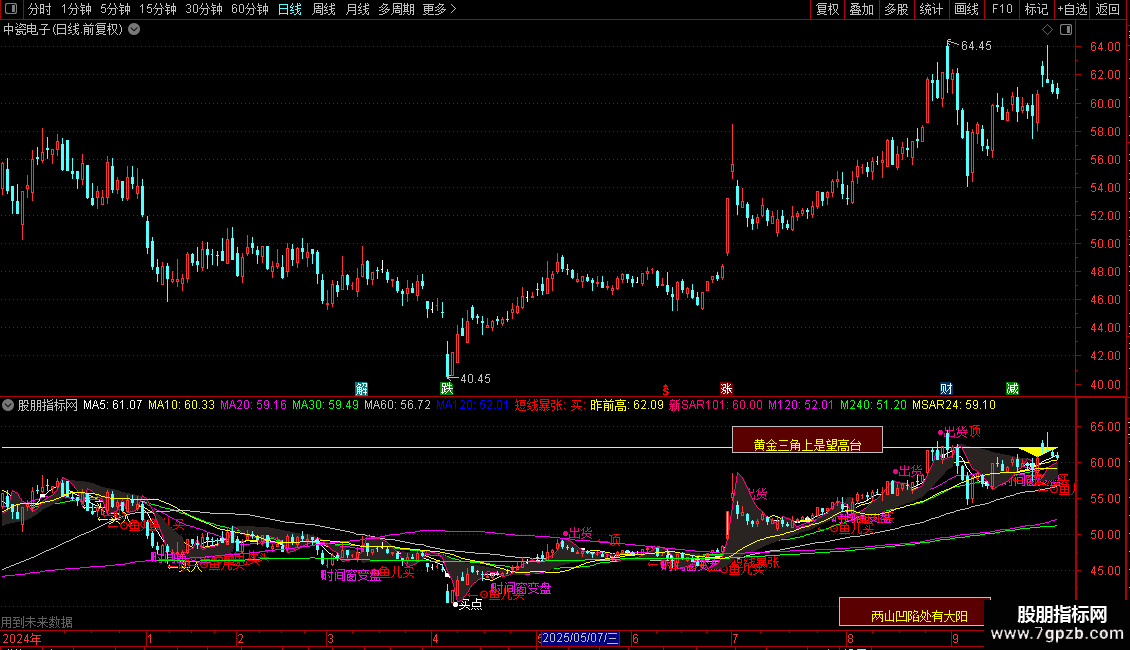 DRAWTEXT_FIX(1,0.70,0.10,0,'黄金三角上是望高台'),COLORYELLOW;