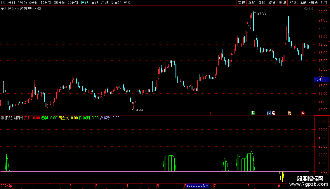 春笋: IF(VAR7 AND REF(CLOSE,1)<=COST(5),20,0),LINESTICK ,COLOR00FF00,LINETHICK2;