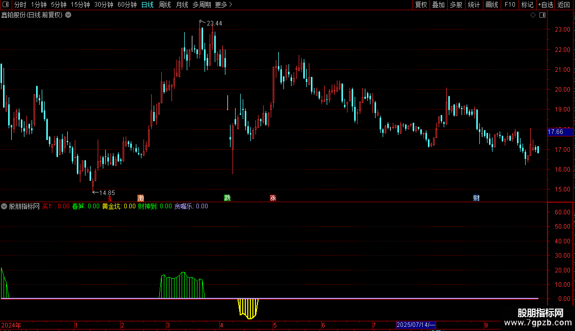 贪嘴乐: IF(VARA>REF(VARA,1) AND VARD AND VARA<-15,30,0),LINETHICK2,LINESTICK,COLORFFA2AF;