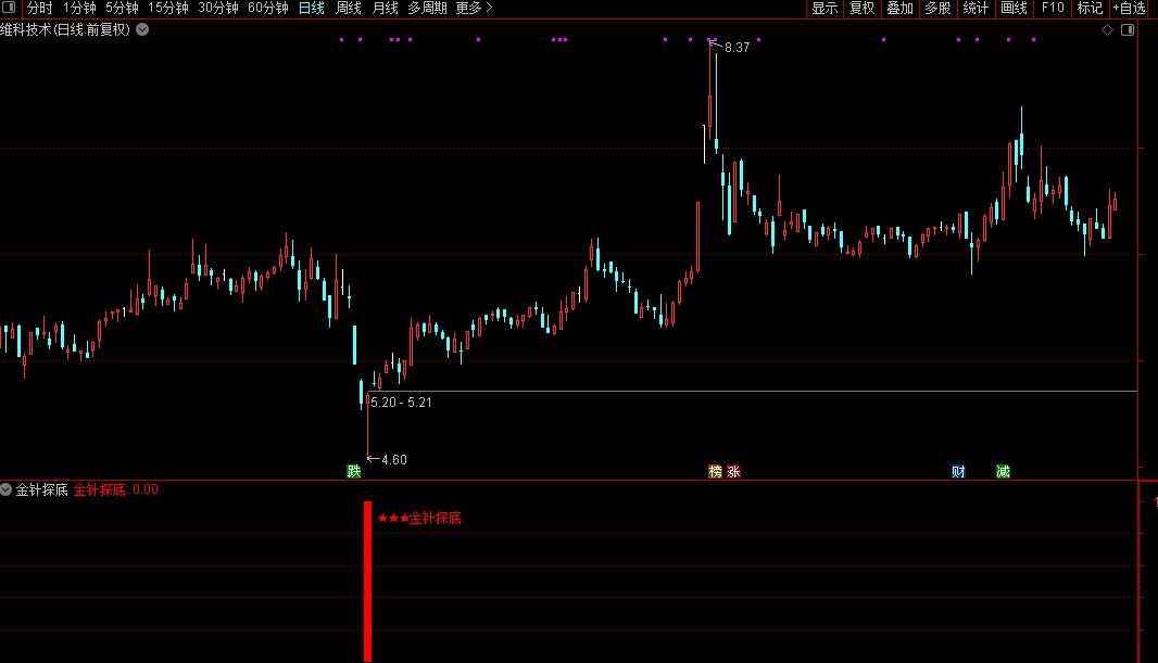金针探底指标信号分散不扎堆,各周期均可能出现有效信号。从见底信号到底部拉升,形成完整系统化操作链条。底部才是长期生存王道,拒绝成为资本鱼饵,坚持底部思维才能规避大起大落风险。