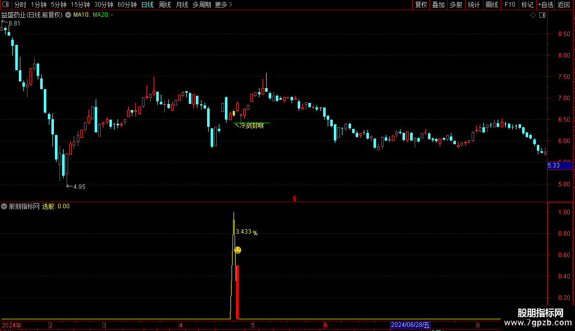 DRAWICON(REF(选股,1) AND 成绩>=1,0.68,5);