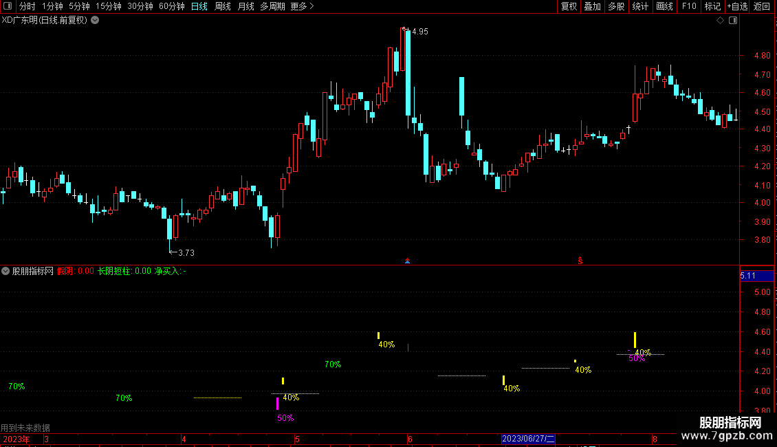 长阴短柱:CLOSE/REF(CLOSE,1)<=0.96 AND VOL<HHV(VOL,30)/1.9,NODRAW,COLORGREEN;