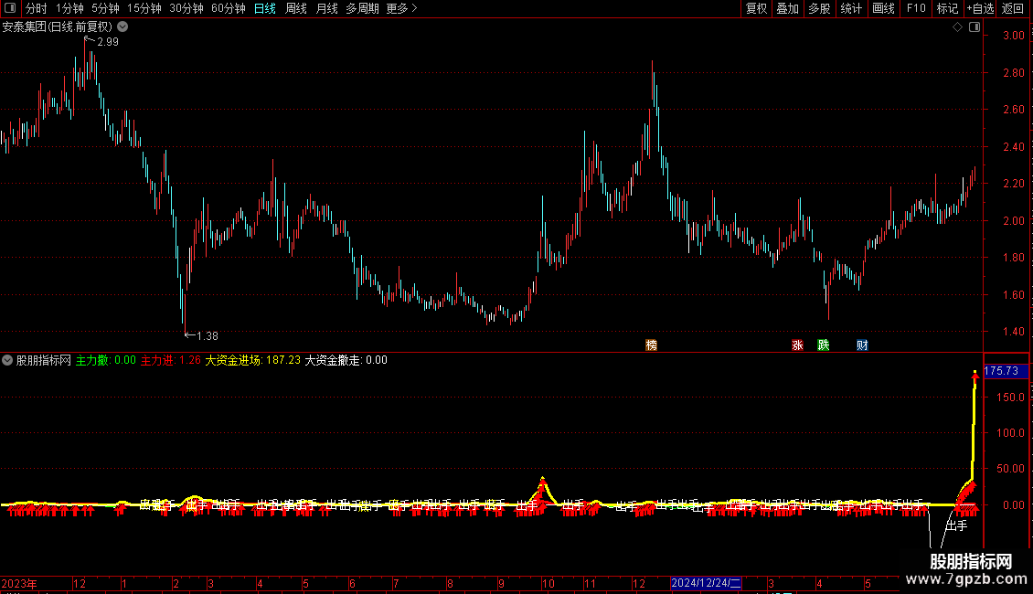 大资金进场:IF(VB>=0,VB*2,0),COLORYELLOW,LINETHICK3;
