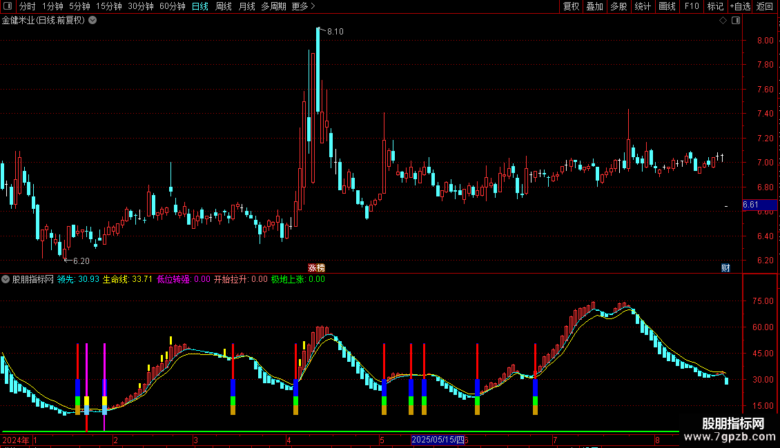 极地上涨:IF(A6,领先,0),COLORGREEN,LINETHICK2;