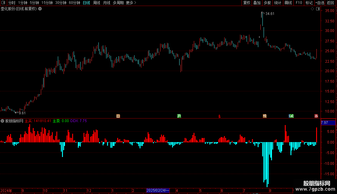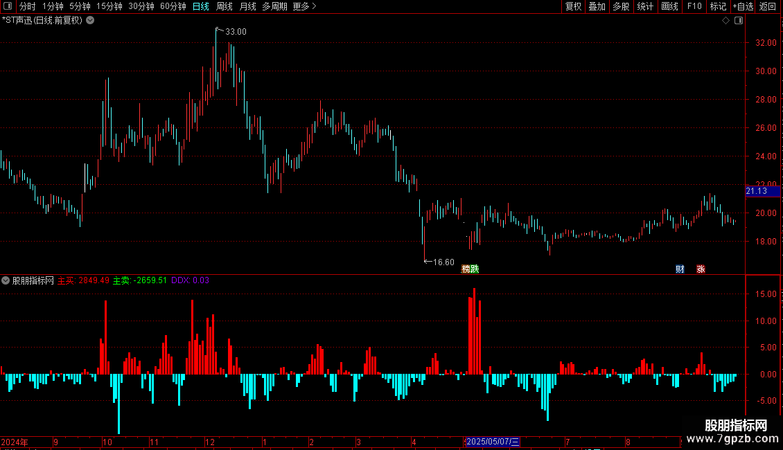 STICKLINE(大单动向<0,0,大单动向,2,0),COLORCYAN;