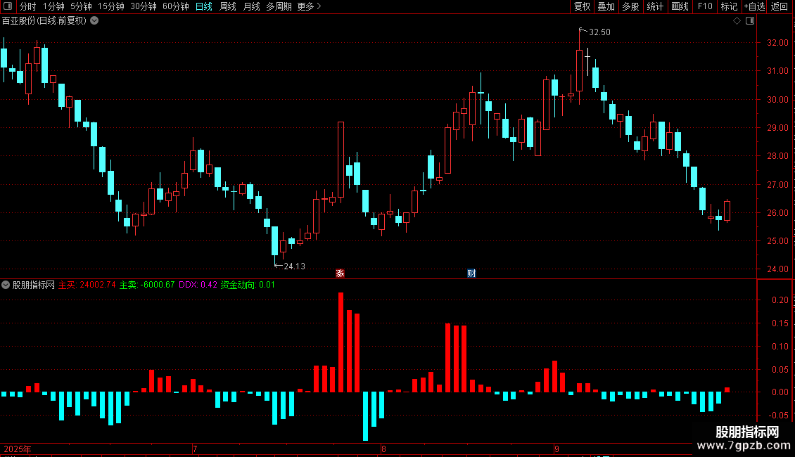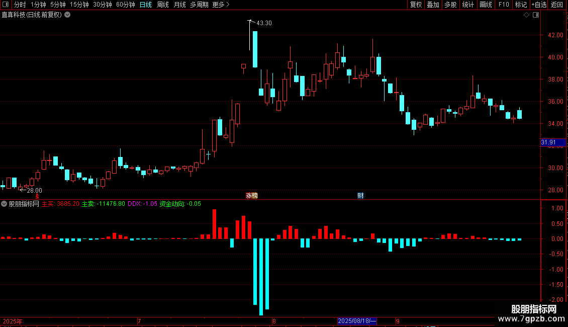操作思路:单日资金动向在0.00左右盘口为震荡市,突然大倍量翻红为买入机会,大倍量翻绿则为卖出机会,持仓,加减仓参考3日资金方向,红绿柱由大变小有变盘趋势。