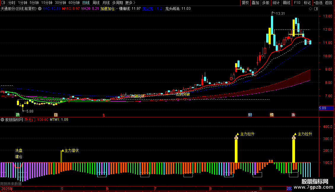 MTM1:MA((CLOSE-REF(CLOSE,13))*31,5),LINETHICK0,COLOR7711EE;
