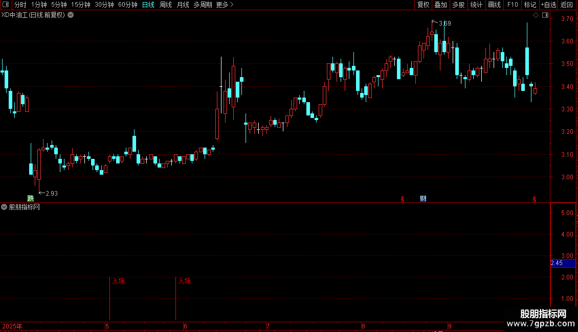 DRAWTEXT(入场,1.8,' 入场'),COLORRED;