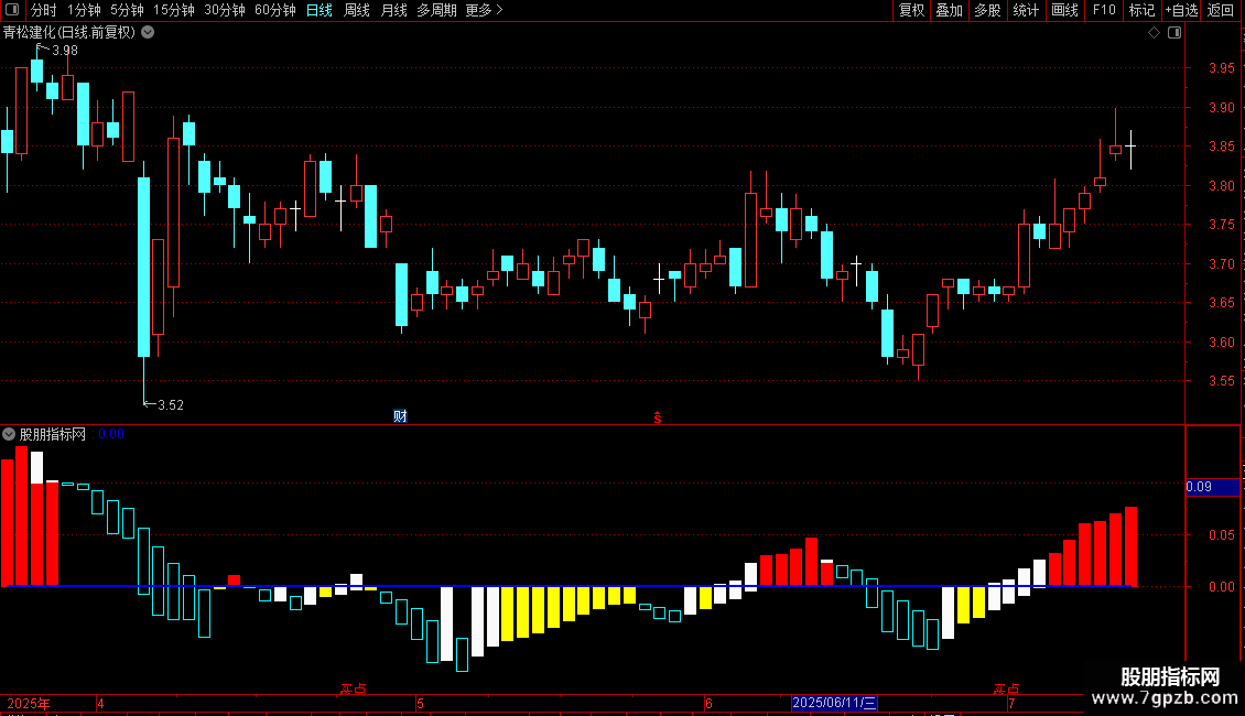 注意: STICKLINE(VAR6>REF(VAR6,1) AND VAR6<0 AND VAR6<VAR7,VAR6,0,3,0);