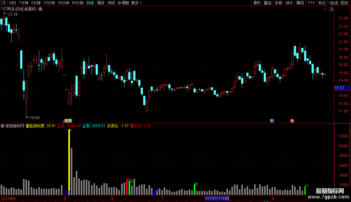 主卖:IF(CLOSE>OPEN,AA*((HIGH-CLOSE)+(OPEN-LOW)),IF(CLOSE<OPEN,AA*(HIGH-LOW),VOL /2)),COLORCYAN,POINTDOT;