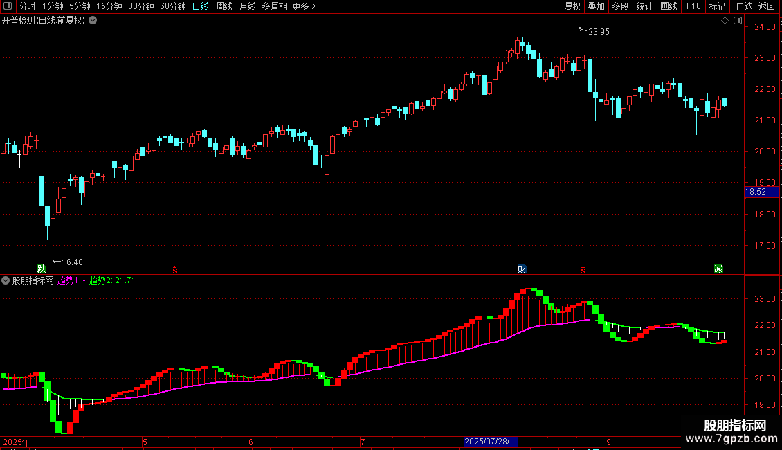 趋势1:IF(VAR7>REF(VAR7,1),VAR7,DRAWNULL),LINETHICK2,COLORFF00FF;